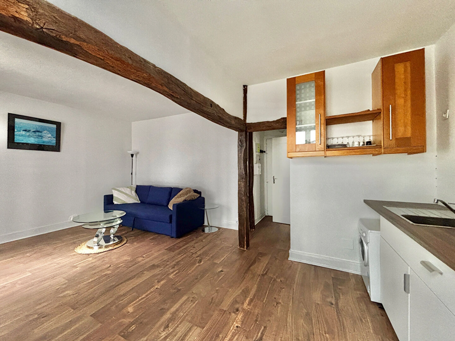 Une entrée, un magnifique séjour spacieux et lumineux et cuisine entièrement équipée, ainsi qu'une salle de bain avec WC. Une CAVE complète ce lot de qualité.