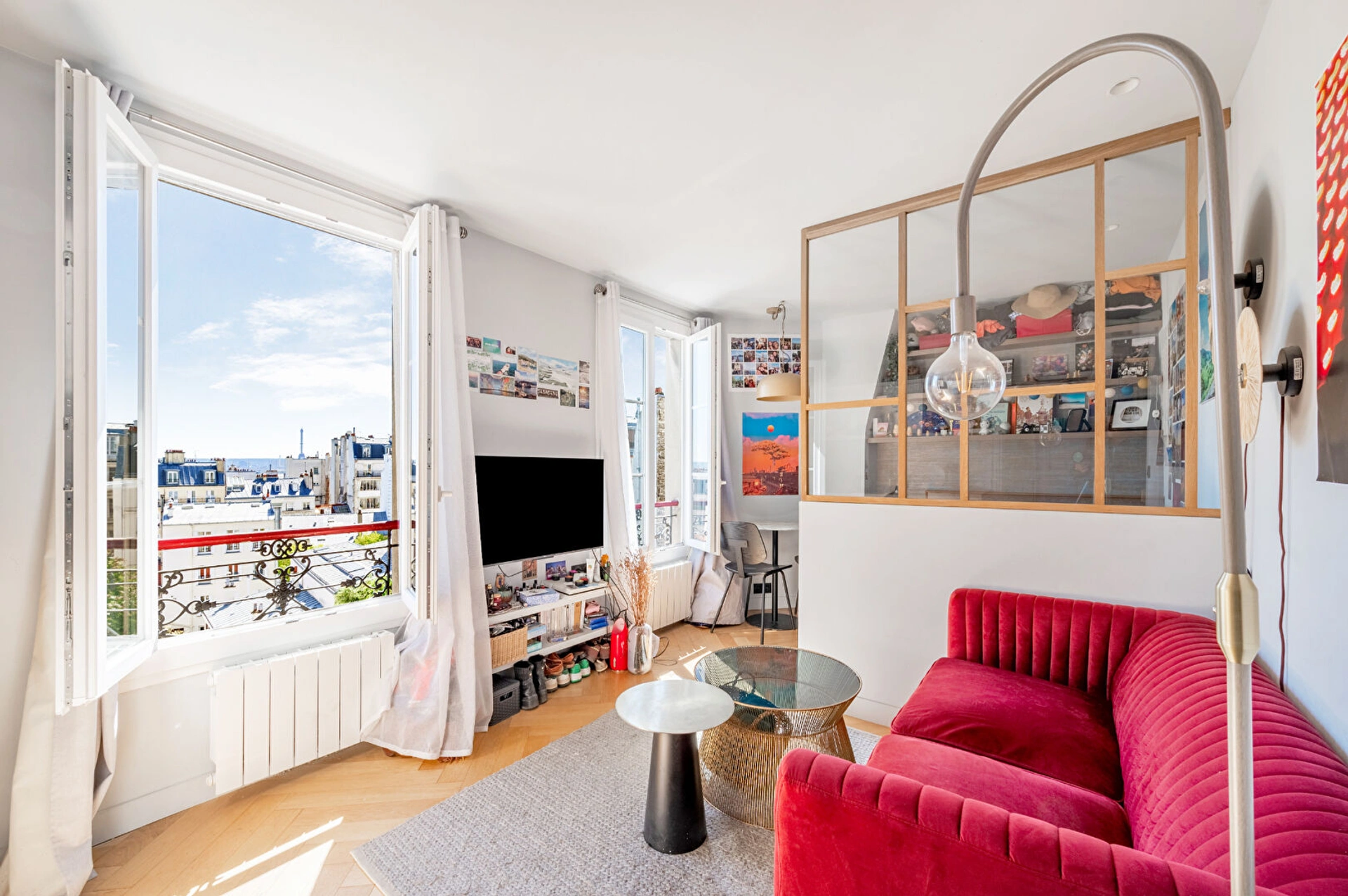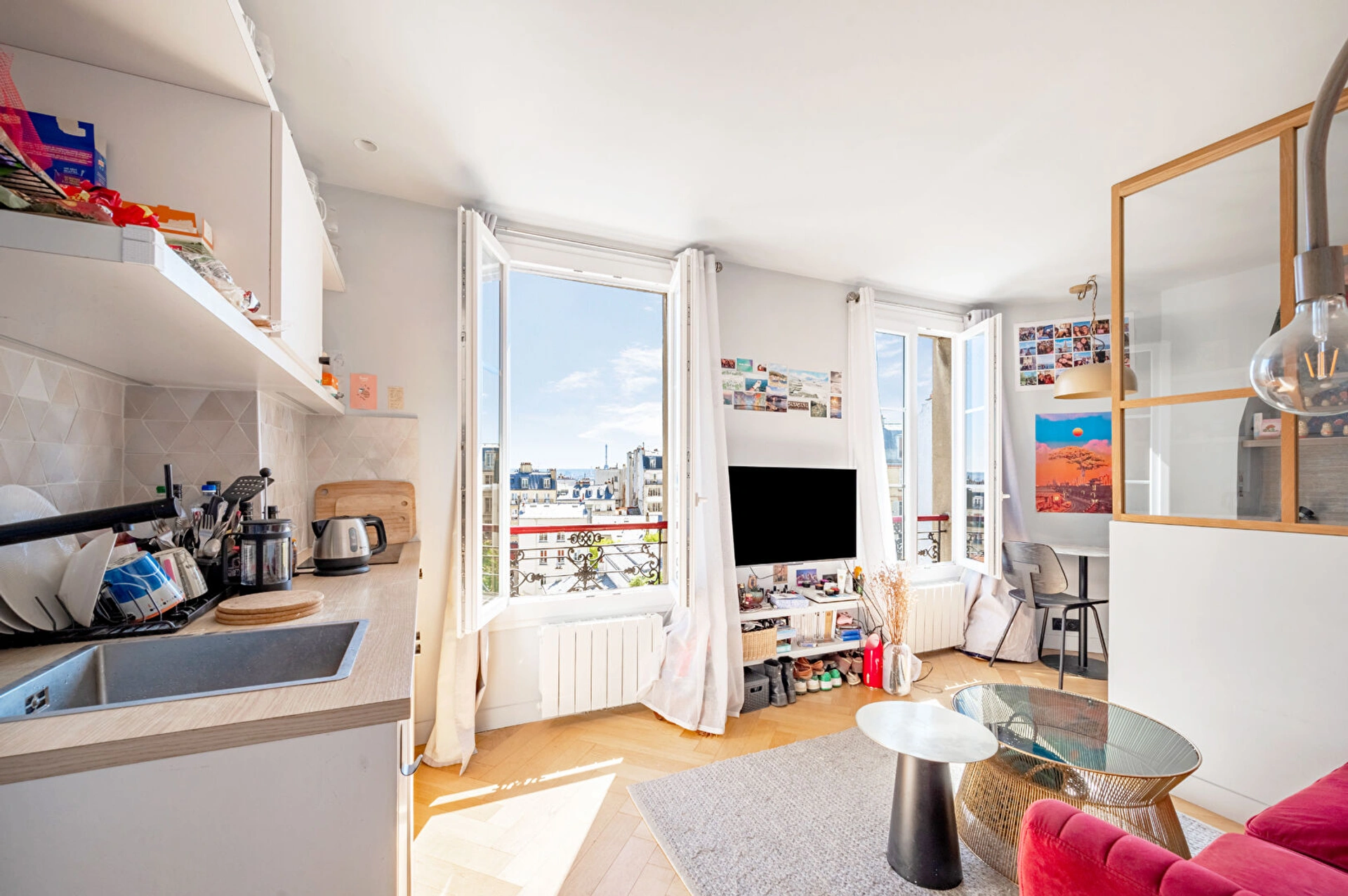 Situé au quatrième étage d'un bel immeuble ancien typiquement parisien, ce bien se distingue dès l'entrée par une luminosité exceptionnelle et une atmosphère sereine. Parfaitement optimisé, l'espace se compose d'une pièce de vie chaleureuse intégrant une cuisine ouverte, entièrement aménagée et équipée avec soin pour maximiser le confort au quotidien. Un coin nuit astucieusement agencé permet de délimiter les espaces de vie, complété par une salle d'eau moderne avec WC, fonctionnelle et élégante.